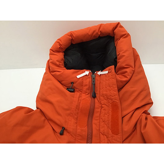 【特長】ダウンプルーフ加工/トンネルフード/ポケット10個(ジッパー付き〈胸1、腰2、左袖1、内1〉、ジッパーなし〈内2〉、フラップ付き〈胸1、腰2〉)/ダブルフラップ仕様(フロントジッパー)/ジッパーが顔に当たらない仕様/立体裁断(肘)/アルパインカフ/リードインコード・システム(裾&ウエスト)