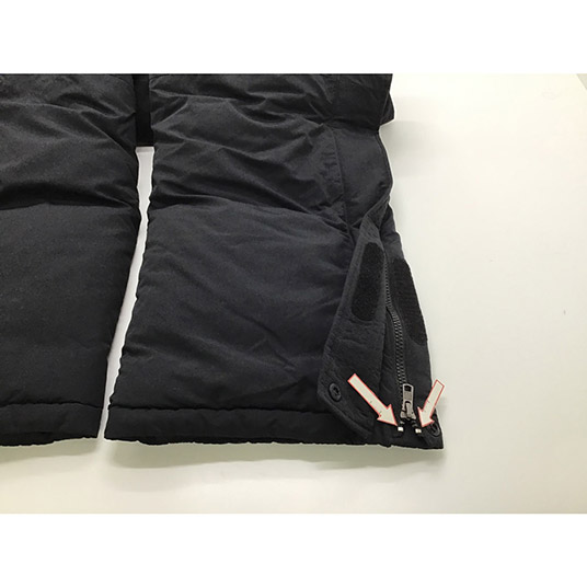 【特長】インナースパッツ付き/ダウンプルーフ加工/サイドフルオープンジッパー/立体裁断(膝)/フラップ付きポケット2個(前もも2)