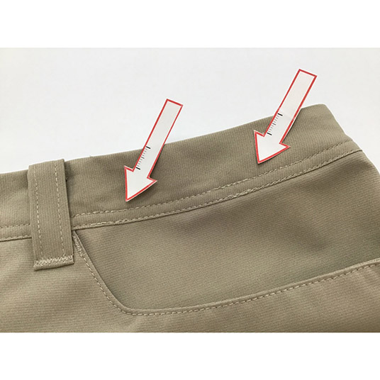 股上:深め(ゆとりのある深さで腰回りをカバー)