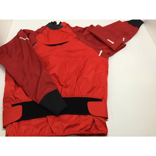 モンベル独自の防水透湿性素材ドライテック®を使用した、秋や春のパドルスポーツに適したセミドライジャケット。動きやすさを高めながら、水の浸入を防ぐ工夫が施されています。着用時には空気抜きが必要です。
