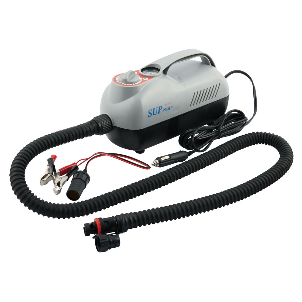 インフレータブルのスタンドアップパドルボートやボートに空気を入れるのに最適な電動ポンプです。車のシガーソケットやカーバッテリーに手軽に接続でき、設定された空気圧で自動的に停止する機能がついています。HR バルブ、C7 バルブ、D7 バルブ、ボストンバルブに対応。