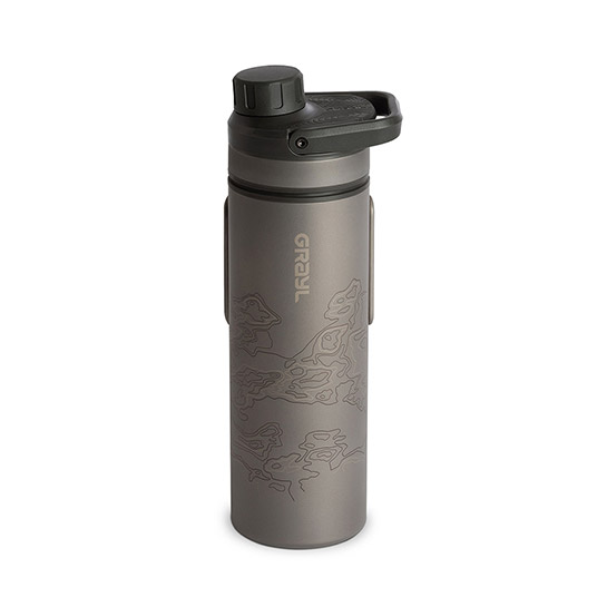 安全な飲料水を簡単に素早く確保できるプレス式浄水ボトル。チタン製で、耐久性、耐食性に優れ、アウターボトルは直火可能。厳しい環境にも耐えるタフ仕様。スリムで持ちやすく、バックパックのポケットなどに入れて携行しやすい形状です。折りたたみできるバタフライハンドルとDカン付きで、Dカンにパラコードを通すことで、降りていけない水場にもアプローチできます。