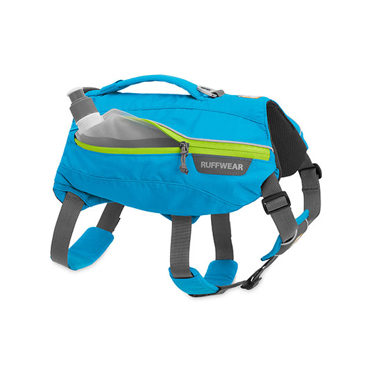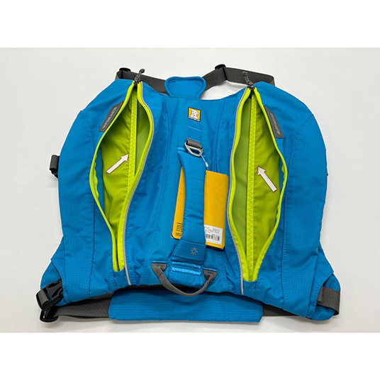 コンパクトな容量で日帰りハイキングやランニングに最適な愛犬用バックパック。5箇所のテープ調整で高いフィット感が得られます。左右のメインポケットに入る0.6Lボトルが2本付属します。