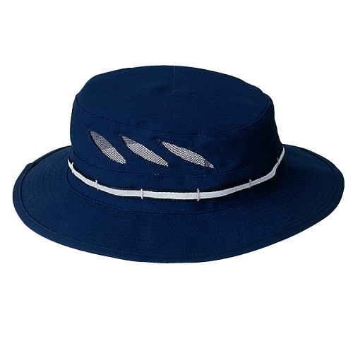 シーカヤッカー・内田正洋氏のアイデアを生かした、海や湖でのカヌーツーリングや釣りに最適なハットです。前を浅くして良好な視界を確保し、後を深くかぶることで風に飛ばされにくくなっています。強い直射日光下でのパドリングを考慮して、ひさしは長めに設定。内側はメッシュ地なので涼しく、外周にはライトを反射して視認性を高めるリフレクティブ・テープを巻いています。