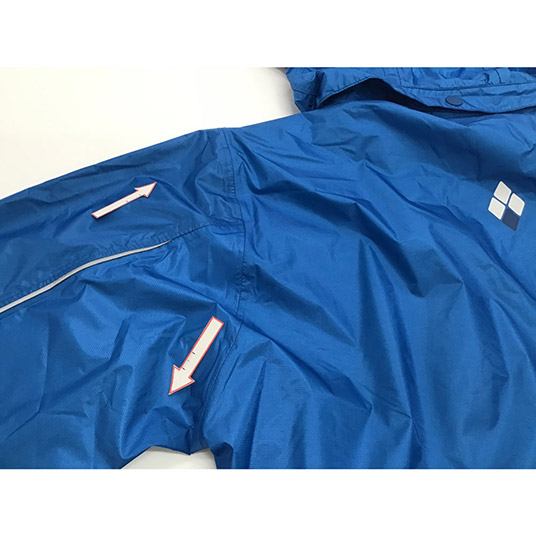 【特長】スマートソーイング/スタッフバッグ付き/トライアクスルフード/ネックアジャスター/ジッパーがあごに当たらない仕様/立体裁断(ひじ)/アルパインカフ/自転車専用パターン/視認性を高める機能