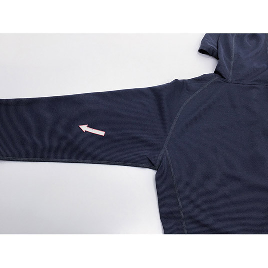 【特長】UVカット / フラットシーマー / ジッパーがあごに当たらない仕様 / 運動時にも揺れないジッパースライダー / サムホール