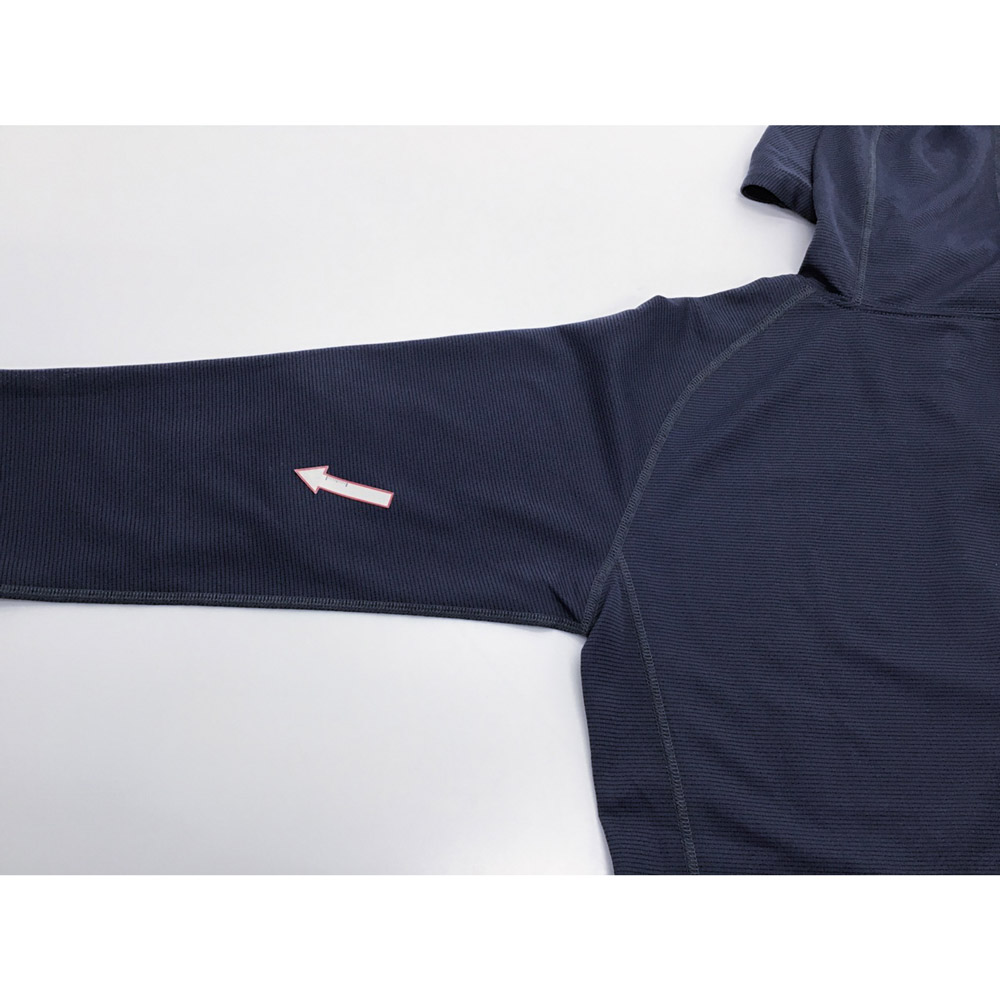 通気性とUVカット効果を両立した、日除けに適したパーカです。生地にはっ水加工を施しているので、水に濡れても保水しにくく、水辺で使用しても快適な着心地です。フードと手の甲までカバーする袖により、効果的に日差しを遮ります。小物の収納に便利なハンドポケット付きです。