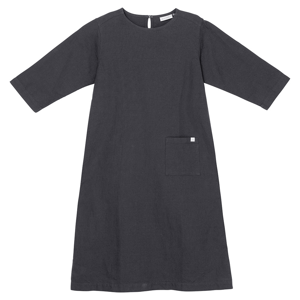 高い通気性を備えた、肌離れのよい七分袖のワンピースです。紙糸が持つ優れた吸放湿性に、コットンの肌触りのよさが加わり、暑い季節でも清涼感のある快適な着心地です。着丈の長い、KAMIKOワンピースよりさらにゆったりとしたシルエットで、旅先や日常でのリラックスウエアとしておすすめです。
