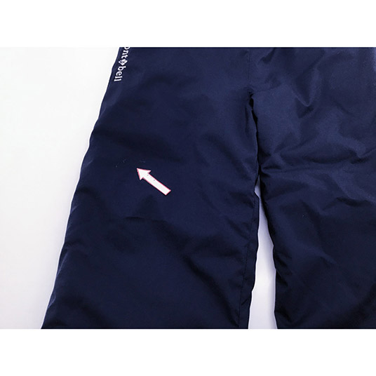 【特長】脱ぎはきしやすいウエストベルト / すそからの雪や寒気の侵入を防ぐインナースパッツ / フロントジッパーなし / ネームタグ付き